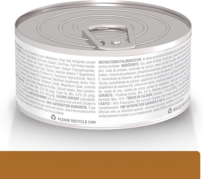 - Hill's Prescription Diet a/d Urgent Care Canned Dog and Cat Food is specially formulated by Hill’s nutritionists and veterinarians to support dogs and cats recovering from surgery, illness or injury