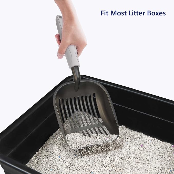 - [Premium Material]: To lift your concern about cat's waste sticking to the scooper, We updated our scooper's coating by using food-grade non-stick design, which makes cleaning easier and faster. Tip-- For better non-stick effect, spraying edible oil (EG, Pam spray oil ) on the scooper's surface is recommended.