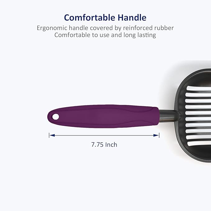- [Premium Material]: To lift your concern about cat's waste sticking to the scooper, We updated our scooper's coating by using food-grade non-stick design, which makes cleaning easier and faster. Tip-- For better non-stick effect, spraying edible oil (EG, Pam spray oil ) on the scooper's surface is recommended.