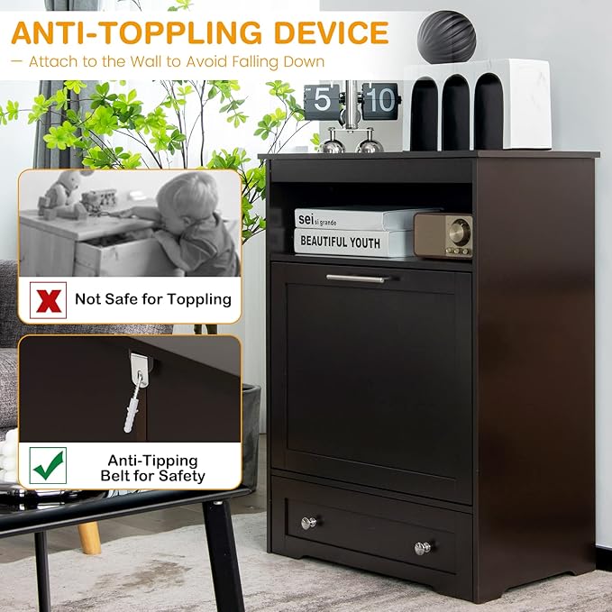 - 【Safe Material & Anti-toppling Devices:】The dog food storage container is made of premium MDF board. 2 dog food bowls are made of food-grade stainless steel for your pet’s safe and healthy eating. Moreover, the anti-toppling devices are included to fix the table to the wall to improve stability and safety.