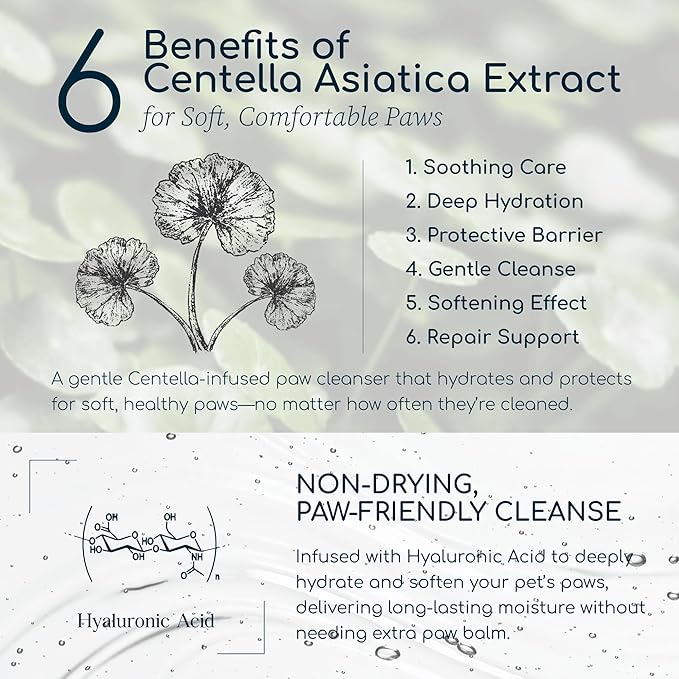 - GENTLE FOAMING CLEANSER FOR PAWS- Freshen your furry friend's paws after their daily walks with our Foaming Paw Cleanser that thoroughly cleanses paws from pollutants and dirt while keeping them hydrated and soothed.
