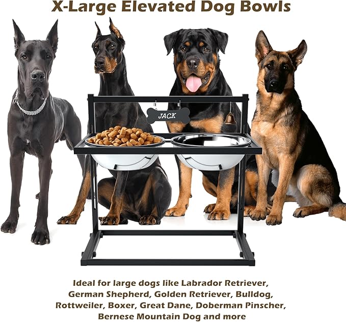 π-πππ«π π Elevated Dog Bowls for Extra Large Dogs with Mat,Raised Dog Bowl Stand for Large Breed Adjusable Height Dog Feeder with Two 3L(ππππππ) Stainless Steel Dog Food Bowls