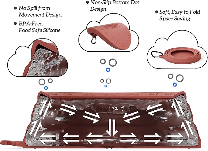- ULTRA STABILITY: Our portable travel bowl features a tapered shape that offers an exceptionally low center of gravity, ensuring unparalleled stability in most situations. Say goodbye to tipping over when you take your beloved pet on the go.