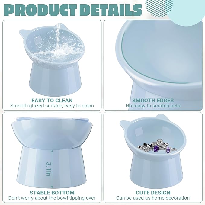 - Reliable Quality: the elevated cat bowl is made of quality plastic, which is safe, reliable and no odor, with smooth border, will not scratch your cats, easy to clean and wipe, will not leave any stains; It is sturdy and long lasting, with a stable base, not easy to tip over, ensuring your cats eat or drink in a comfortable and healthy way; Note that do not put it in the microwave or dishwasher