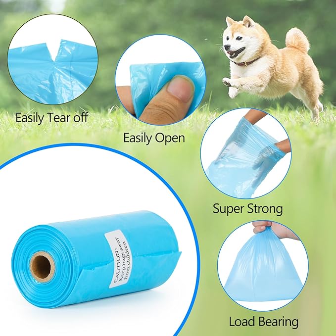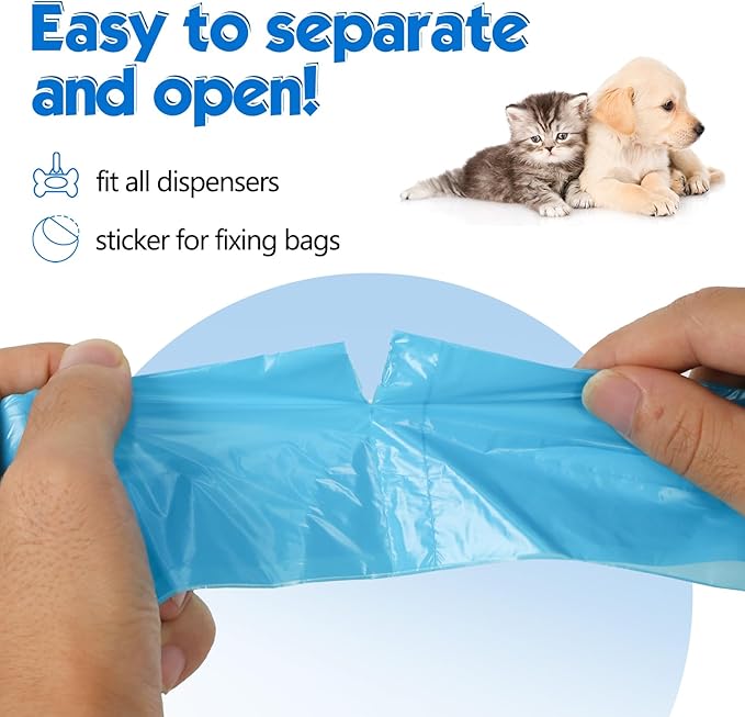 - 【Easy Tear-off】- The doggie poop bags is with good toughness and breakpoint design and the bottom easy-tear hole seam for quick detach bag from the roll. When you're on the go with your dog, you can enjoy stress-free outdoor walks with your dog.!