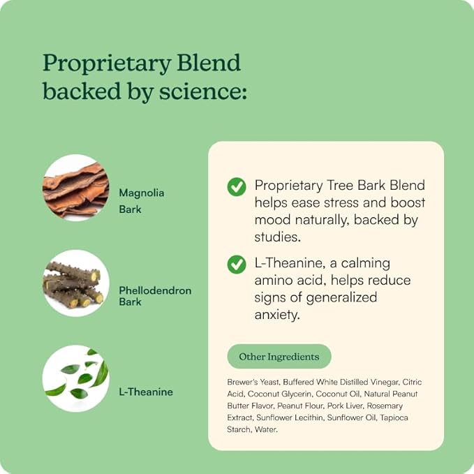 - SCIENCE-BACKED INGREDIENTS – Each chew contains L-Theanine (100mg) plus a proprietary blend of Magnolia Bark & Phellodendron Bark (174mg) to naturally promote calmness and balanced behavior.