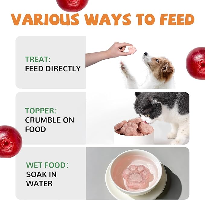- Non Artificial Additive: Our quail egg yolk and cranberry treats are GRAIN-FREE and GLUTEN-FREE, with no artificial additives, they offer a natural source of protein and fiber, allowing cats & dogs to enjoy the pure taste and health benefits of quail egg yolks and cranberry, which supports overall health and well-being