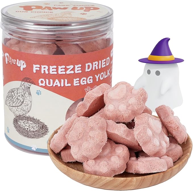 - Premium Quail Egg Yolk: Pawup's freeze-dried treats use free-range, non-GMO fed quail egg yolks and nutrient-rich cranberry. This combination delivers a pure, concentrated protein source with a 5:1 raw-to-finished ratio. Strictly tested and certified by SGS, BRCGS, and UKAS, ensuring top-tier safety and quality in every bite