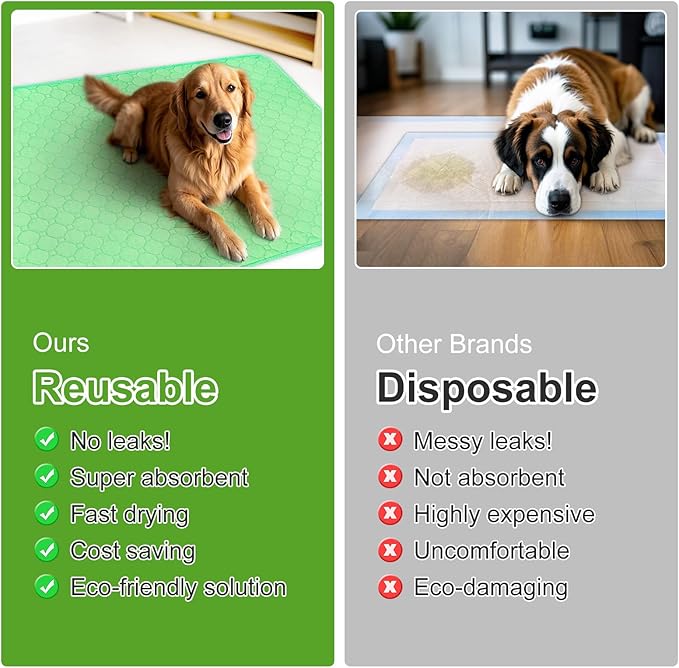 - Waterproof Pet Pee Pads: Crafted from high-quality, multi-layered fabric, these washable dog pee pads feature advanced absorbent technology that quickly locks in moisture, preventing leaks and keeping your floors dry. Ideal for puppies, senior pets, or any pet needing extra care, ensuring maximum comfort during use.