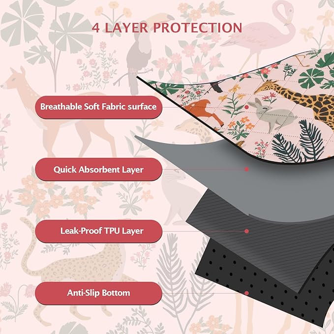 IEUUMLER Washable Pee Pads for Dogs, 2 Pack Forest Pattern Reusable Waterproof Puppy Pads, Non-Slip Super Absorbent Dog Training Pad for Playpen Crate Bed EU013 Pink Jungle, 36x24