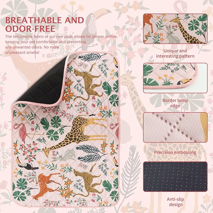 IEUUMLER Washable Pee Pads for Dogs, 2 Pack Forest Pattern Reusable Waterproof Puppy Pads, Non-Slip Super Absorbent Dog Training Pad for Playpen Crate Bed EU013 Pink Jungle, 36x31