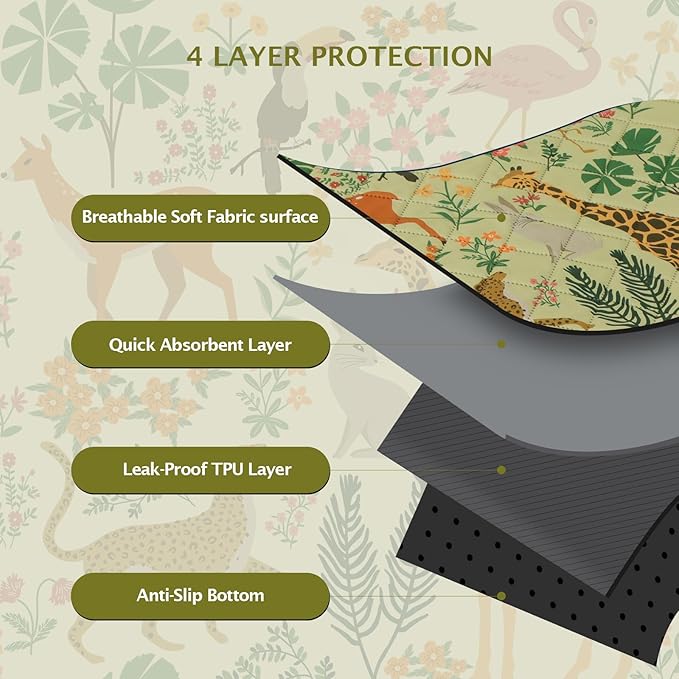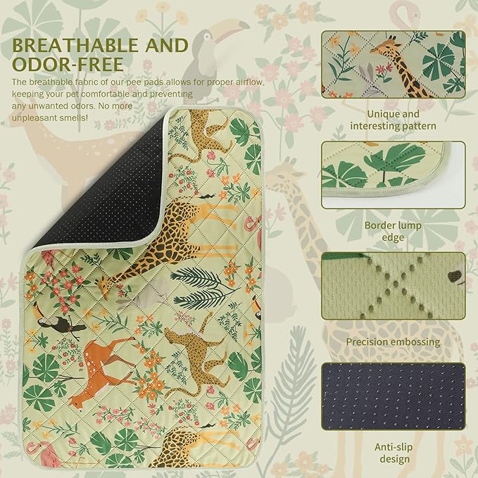 IEUUMLER Washable Pee Pads for Dogs, 2 Pack Forest Pattern Reusable Waterproof Puppy Pads, Non-Slip Super Absorbent Dog Training Pad for Playpen Crate Bed EU013 Green Jungle, 24x18