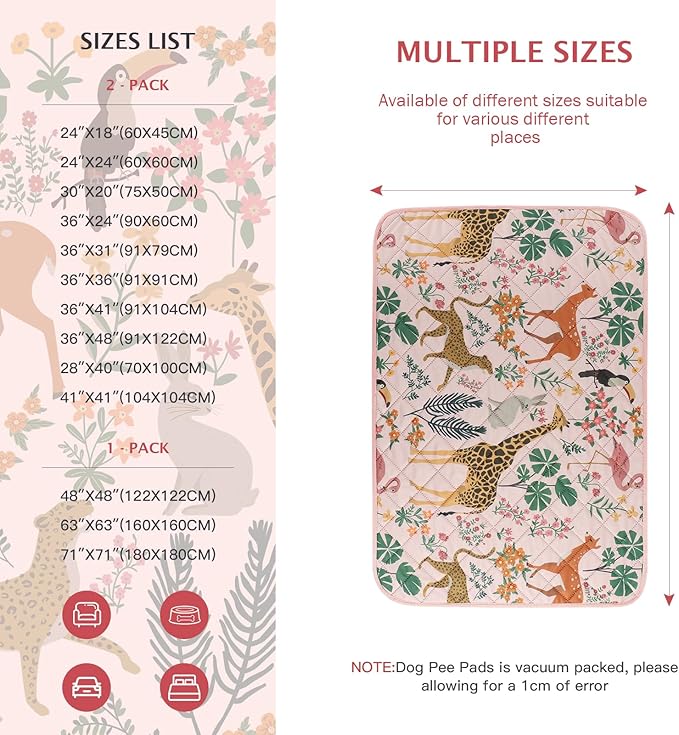 IEUUMLER Washable Pee Pads for Dogs, 2 Pack Forest Pattern Reusable Waterproof Puppy Pads, Non-Slip Super Absorbent Dog Training Pad for Playpen Crate Bed EU013 Pink Jungle, 24x18
