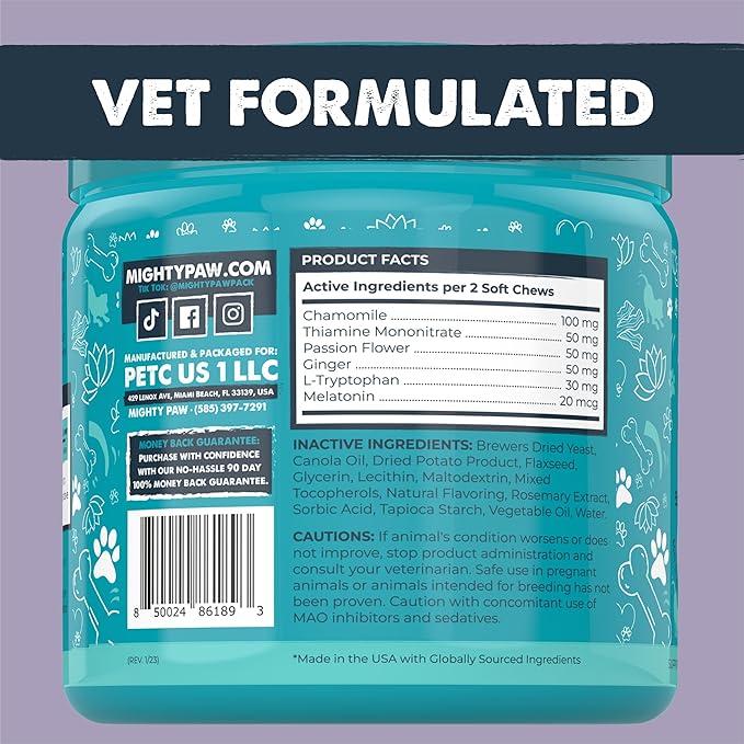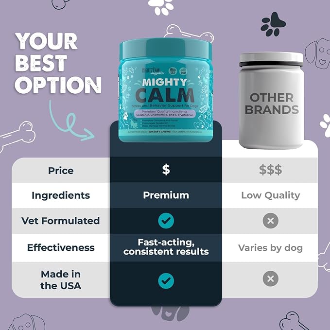 - Vet Formulated, Made in the USA: Nurture a serene and relaxed state for your dog with our Mighty Calm Stress and Behavior Support pet supplement and calming dog treats! Formulated by veterinarians and proudly made in the USA for your furry companion’s calm experience!