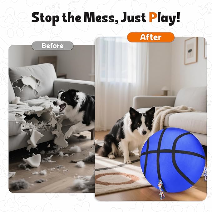 - 【High Quality Materials】: The inner liner of this sturdy dog ball is made of thickened PVC material, which is not easy to deform and deflate, and can withstand more pressure; the outer jacket is made of 900D Oxford cloth with basketball shape, which is wear-resistant and not easy to tear, and can withstand intense exercise.