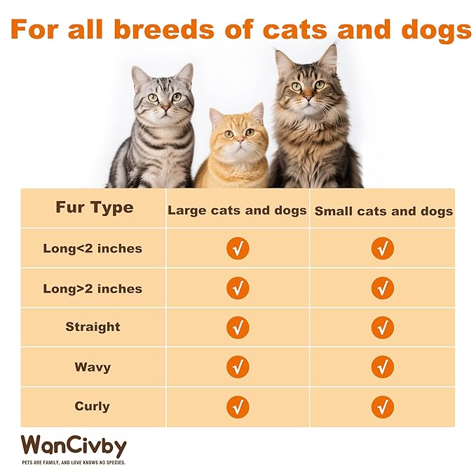 - Professional fit for all hairs: Ragdoll's fine, long hair, Maine Coon's cotton wool, Golden Retriever's multi-layered hair, Teddy Dog's curly hair. It can realize the care of smoothing, detangling and removing the bottom lint to meet the daily hair care needs of all types of pets.