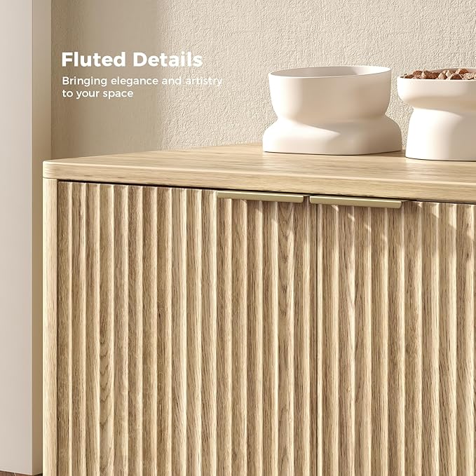 31.5" Oak Cat Litter Box Enclosure Furniture, Large Decorative Hidden Litter Box Cabinet, Fluted Modern Bohemia Kitty End Table for Living Rooms, Entryways, or Bedrooms