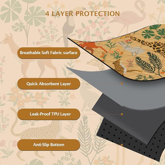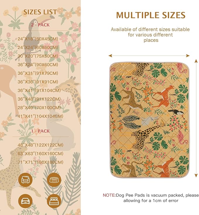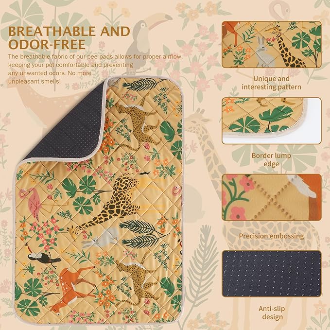 IEUUMLER Washable Pee Pads for Dogs, 2 Pack Forest Pattern Reusable Waterproof Puppy Pads, Non-Slip Super Absorbent Dog Training Pad for Playpen Crate Bed EU013 Earth Yellow Jungle, 36x24