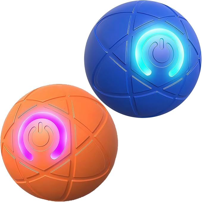 Interactive Dog Balls, Made TPE Material, Dog Toy for Aggressive Chewers, Glow in The Dark Dog Ball, USB Charging Two-Piece Set (Blue and Orange)