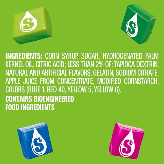 - Featuring zesty flavors, including sour strawberry, sour green apple, sour blue raspberry, and sour watermelon that you can squish, stack, and mash