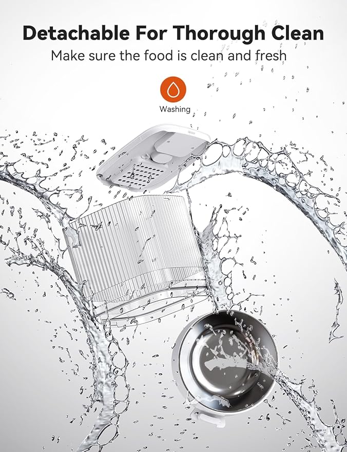- 【Dual Power Supply & Low Food Sensor】 Our Timed Pet Food Dispenser includes a low food LED indicator and app alerts to notify you when it is time for a refill. The dual power supply system (Adapter & Battery) ensures your pets never miss a meal even during unexpected power outages.
