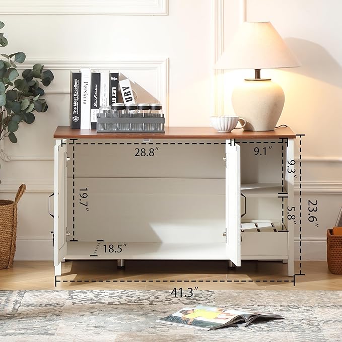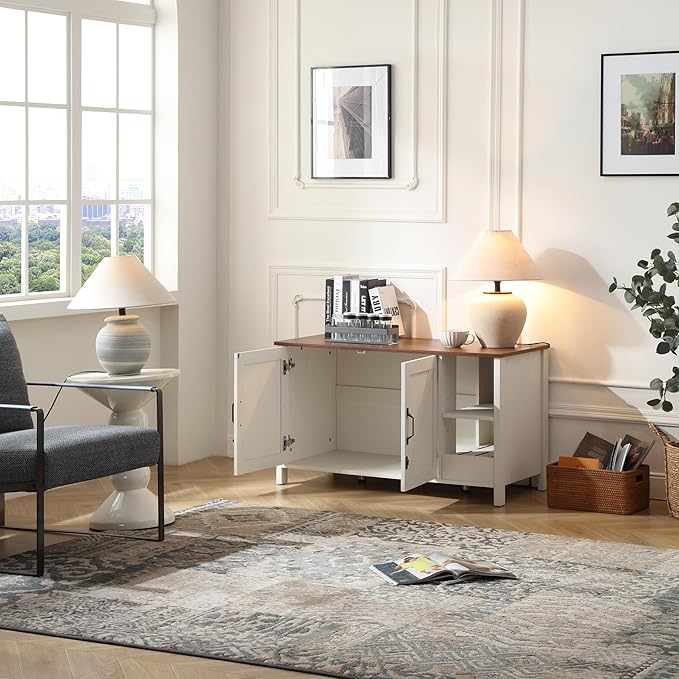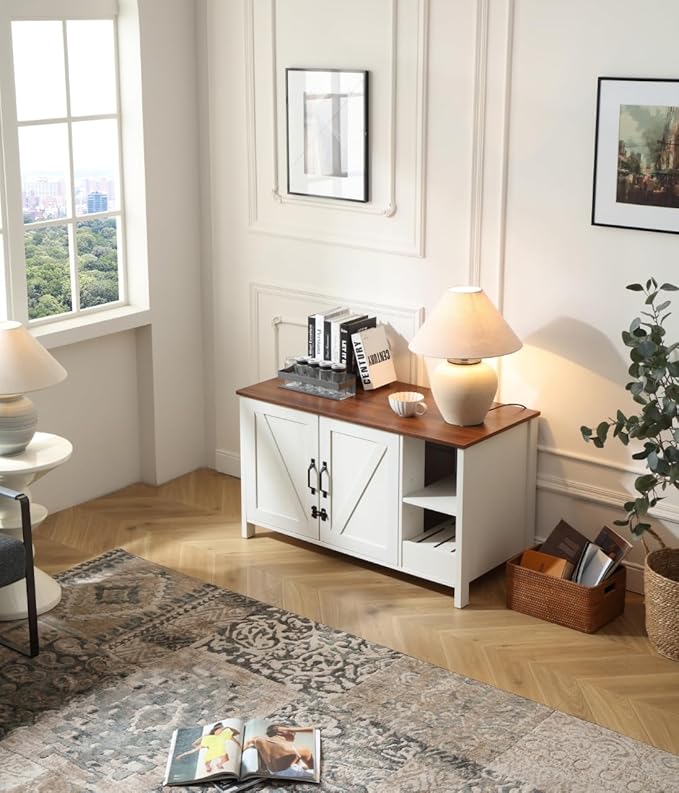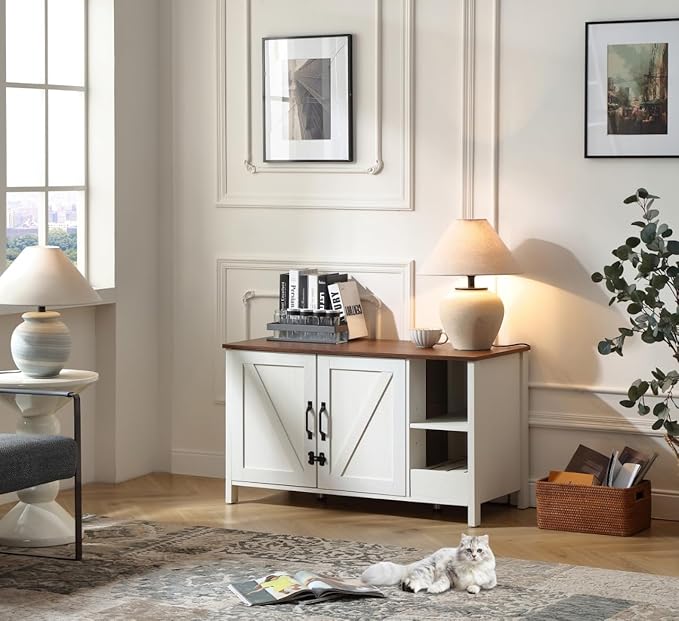 41.3'' Cat Litter Enclosure,Adjustable Shelf for Dog Proof and Storage,Locks Added for Cat,Litter Collector,Small Indoor Pet House,Antique White