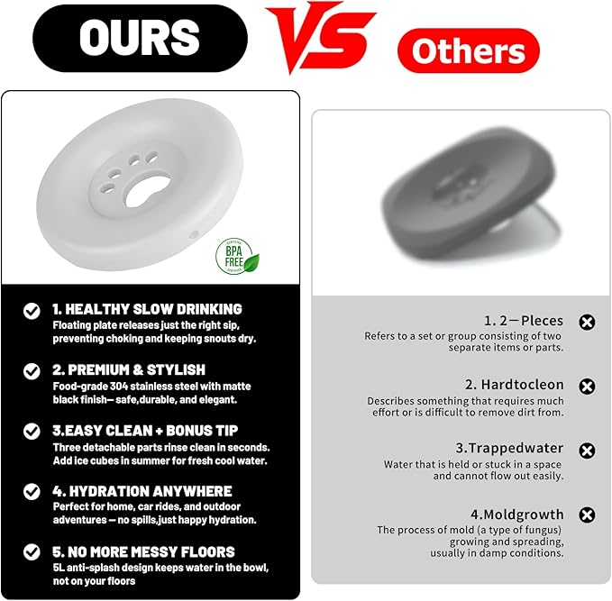 - Splash-Proof Floating Disk Design: The double-layer structure slows drinking speed and prevents water from splashing, keeping floors cleaner and reducing mess.