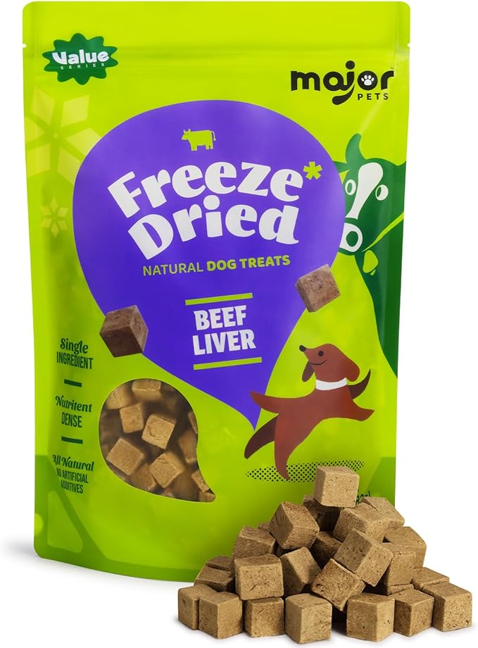 MAJOR PETS Freeze Dried Beef Liver Dog Treats - Single Ingredient - No Preservatives & High Protein - Premium Training Treats & Meal Topper - Made and Sourced in The USA - 7 oz Value Pack