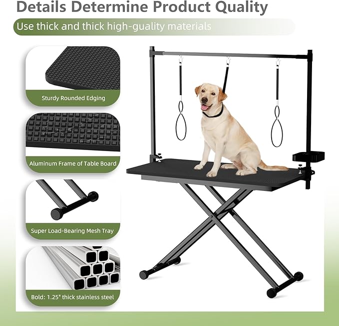 - Cost-Effective Grooming Solution: Save money and time by grooming your pets at home with our grooming table for dogs at home. With this pet grooming table, you can easily handle your pets' grooming needs, keeping them looking their best without needing to visit expensive grooming salons.