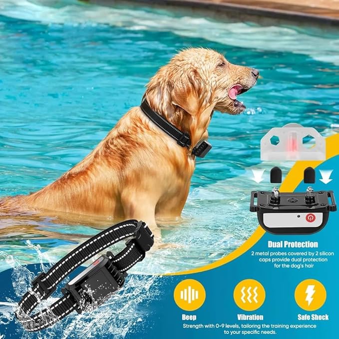 - 4.Thoughtful & Safe Design :The electric fence collar is adjustable, ranging from 8 to 28 inches, making it suitable for all dogs (10 to 110 pounds). It comes with 4 conductive posts: 2 small ones for short hair dogs and 2 large ones for long hair dogs. Additionally, 4 silicone caps are provided dual protection. The electric collar is made of reflective fluorescent TPU, enhancing the safety of dogs at night