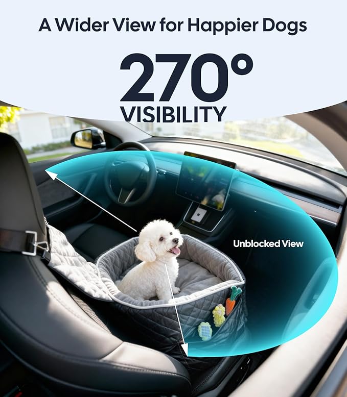 - 【Elevated Comfort – Stress-Free Rides】 Does your pup get restless in the car? Our booster seat raises your dog’s view, helping them see outside and stay calm. Elevated seating reduces anxiety, prevents carsickness, and keeps your furry friend relaxed during every trip.
