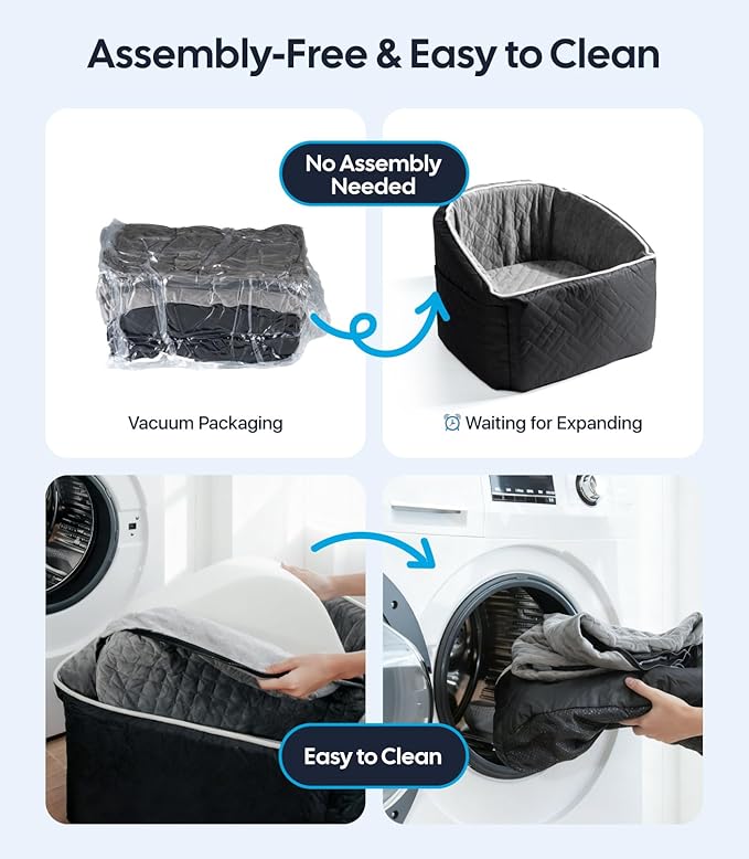 - 【All-Weather Use, Easy Cleaning】 Built with durable, waterproof, and wear-resistant fabric that stands up to sand, mud, and pet hair. Quick-dry surface wipes clean in seconds, while the removable cover is fully machine washable. Perfect for car trips, cozy naps at home, or outdoor camping adventures—one seat for every setting.