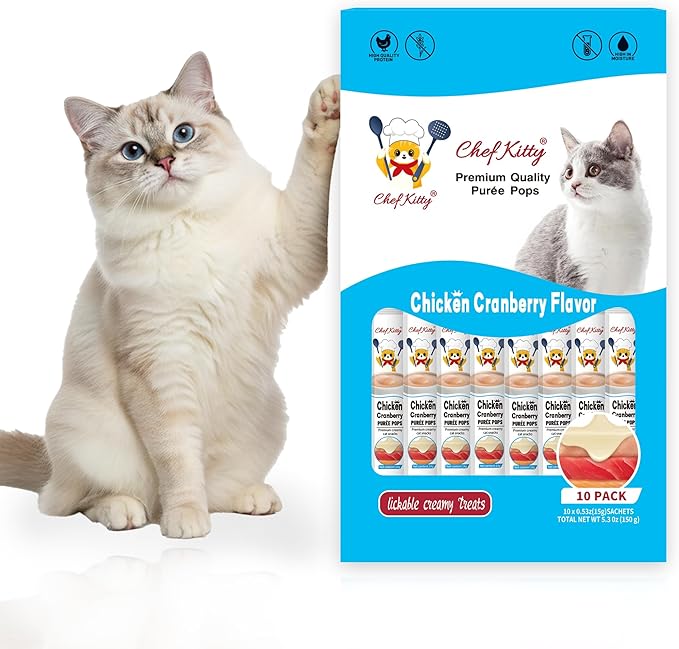 Purée Pops, Cat Treats, Grain-Free, Lickable, Squeezable Creamy Cat Treat/Topper with Vitamin E & Taurine, 0.5 Ounces Each Tube, 10 Tubes, Chicken with Cranberry Recipe