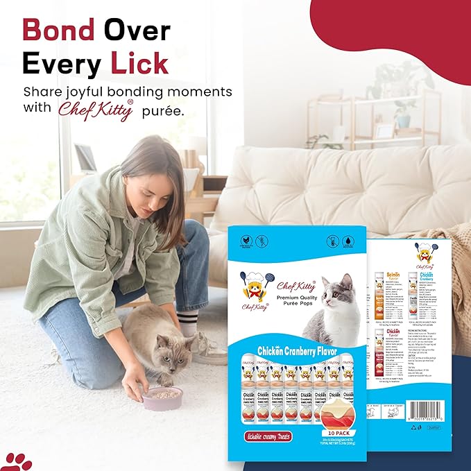 - FUN TO FEED & EASY TO SERVE: Squeeze directly from the tube to bond with your cat, or use as a meal topper or medication helper. Available in five irresistible flavors cats crave: Chicken, Tuna, Salmon, Chicken & Cranberry, and Chicken & Krill.