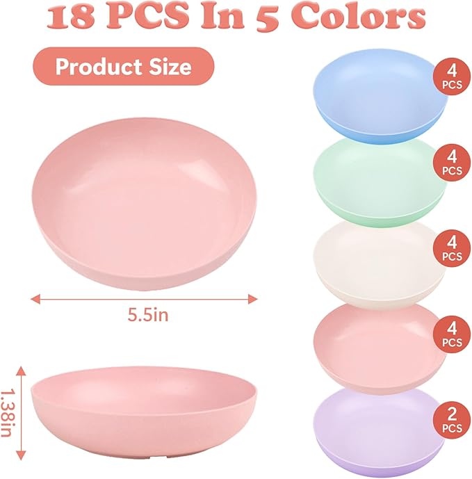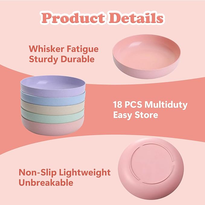 [18 Pack] Cat Dishes Whisker Friendly, Shallow Wide Pet Food and Water Bowl, 5.5 Inch Cat Food Dish, Friendly Wet Feeding Bowl, Durable Wheat Straw Pet Bowls, Pet Plate for Kittens (Indoor/Outdoor)