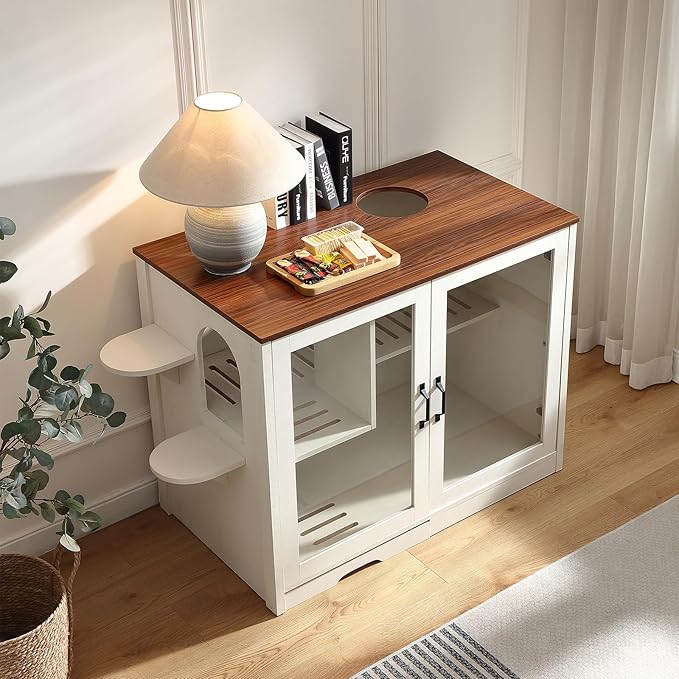 - 【Stylish Glass Doors】Tempered glass doors offer a clear view of your cat while effectively containing litter and odor. Their sleek design complements any home decor, combining practicality with modern style.